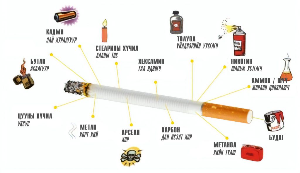 Нэг тамхи 15-20 мг никотин агуулна.